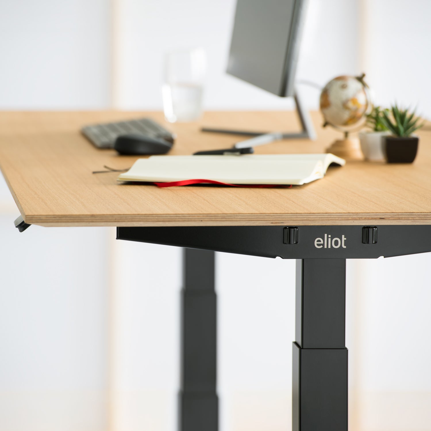 Der höhenverstellbare Schreibtisch Eliot Lock ist in den Breiten 160cm und 180cm erhältlich. Die außergewöhnlichen Tischplatten haben eine Kante mit Fase und hochwertige und besondere Oberflächen.