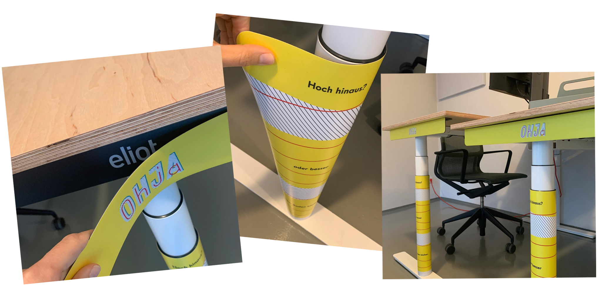 Verleihe deinem höhenverstellbaren Schreibtisch eine smarte Persönlichkeit oder einen einzigartigen Look mit den patentierten magnetischen Eliot Covern. Die passgenauen Cover haften magnetisch an den Seitenrahmen und Säulen– ganz ohne Werkzeug. Wähle aus beliebten Designs oder personalisiere dein eigenes Motiv. Alle Cover passen auf die runden Säulen den weißen und schwarzen Schreibtisch Eliot Original und Tiny – für mehr Stil, Farbe und Persönlichkeit an deinem Arbeitsplatz.