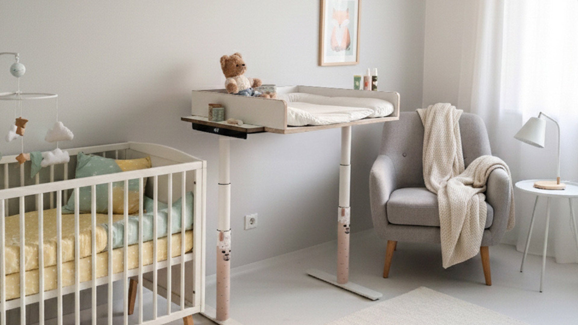 Ein Wickelaufsatz für den Schreibtisch macht aus deinem höhenverstellbaren Tisch einen ergonomischen Wickelplatz – und bleibt dabei ein Möbelstück, das du langfristig weiter nutzen kannst.