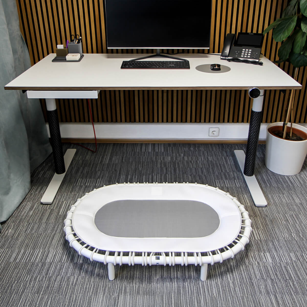 Das Standpolin bringt gesunde Aktivität in den Alltag am Schreibtisch Eliot. Durch das natürliche, sanfte Schwingen werden hunderte Muskelgruppen aktiviert, das Gleichgewicht trainiert und der Stoffwechsel angekurbelt.